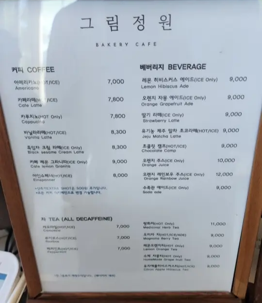 까먹어서 결국 카카오맵에서 퍼온 메뉴판. 비싼편이긴 한데 풍경을 한동안 감상하다보면 카페입장권.풍경감상권으로 그냥 넘어갈 수 있다. 또 음료 비쥬얼,재료도 나름 신경 쓴 듯하다. 초콜릿 캠프랑 제주 말차 초코라떼를 마셨는데 초콜릿 캠프는 마시멜로우가 올라간 진한초콜릿 우유, 한입 마시고 살짝 구워진 마시멜로우를 베어먹으니 부드럽고 아주 달달했다. 제주 말차 초코라떼는 향이 말차향이 가득해서 밭에 온 느낌이었다. 비주얼이 훌륭했는데 초콜릿은 약간 이용당한 느낌으로 크게 존재감은 없었다. 초코망토를 두른느낌.? 초코나무 숲이라고 생각하고 시키면 약간 실망할 수도 있겠다. 나는 말차 특유의 씁쓸한 맛이 잘 느껴져서 좋았다.