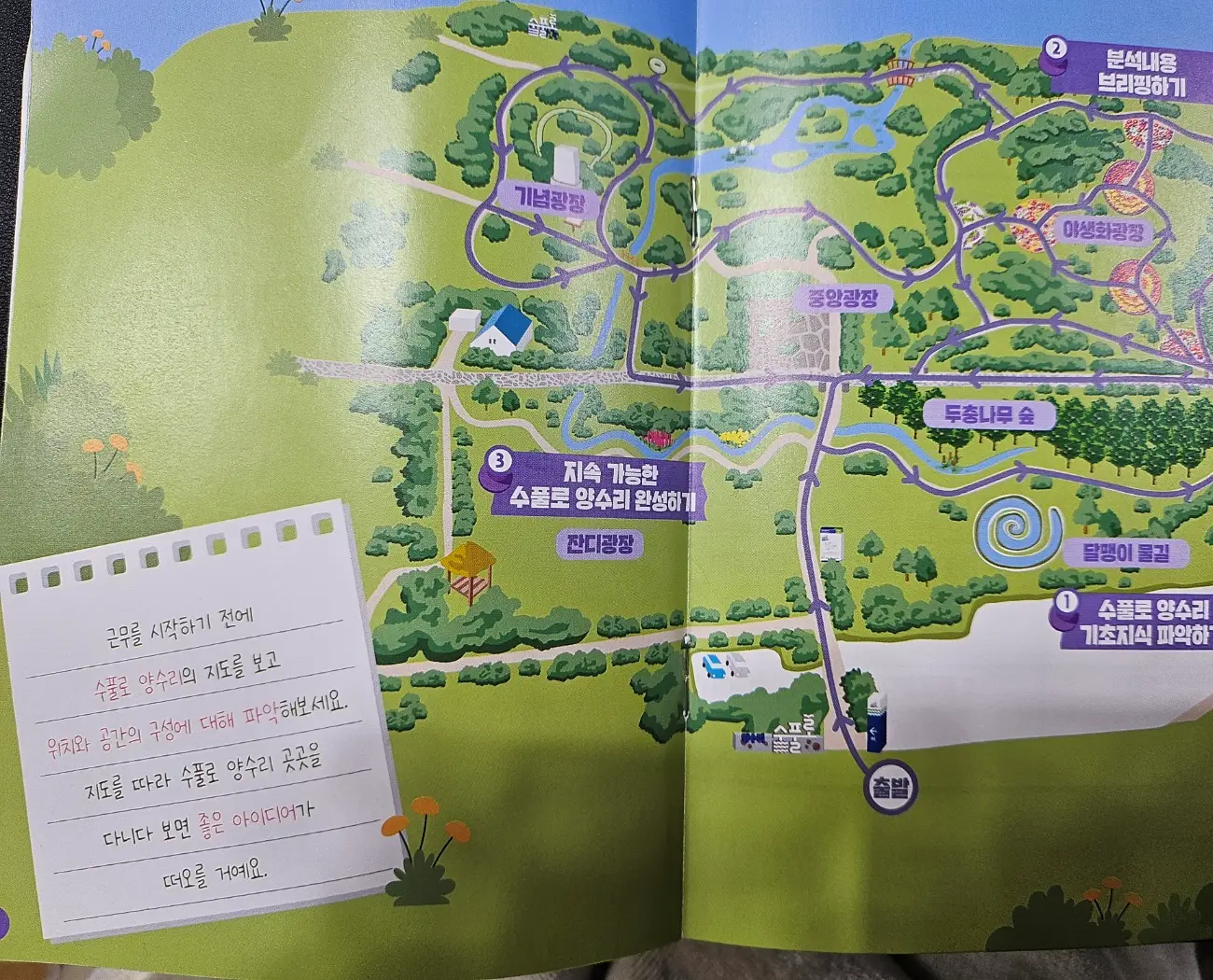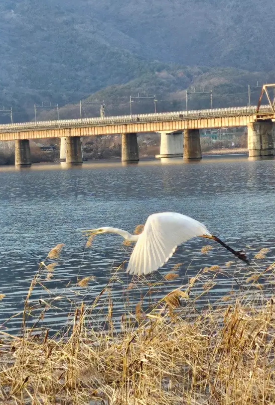 표지판도 있고 책자도 있다. 손시려서 가방에 일단 집어넣고 카페에 들어가서야 열어봤는데 책자는 단순한 지도가 아니라 수풀로 사업에 대한 홍보에 가까운 내용이었다. 백로가 날아다니고 강가엔 갈대가 한창이다. 환경이 살아있네 싶으면서.. 집순이인 나는 이런건 비무장지대(DMZ)쯤 가야 볼 수 있는 것 아니었나. 라는 생각도 했다.