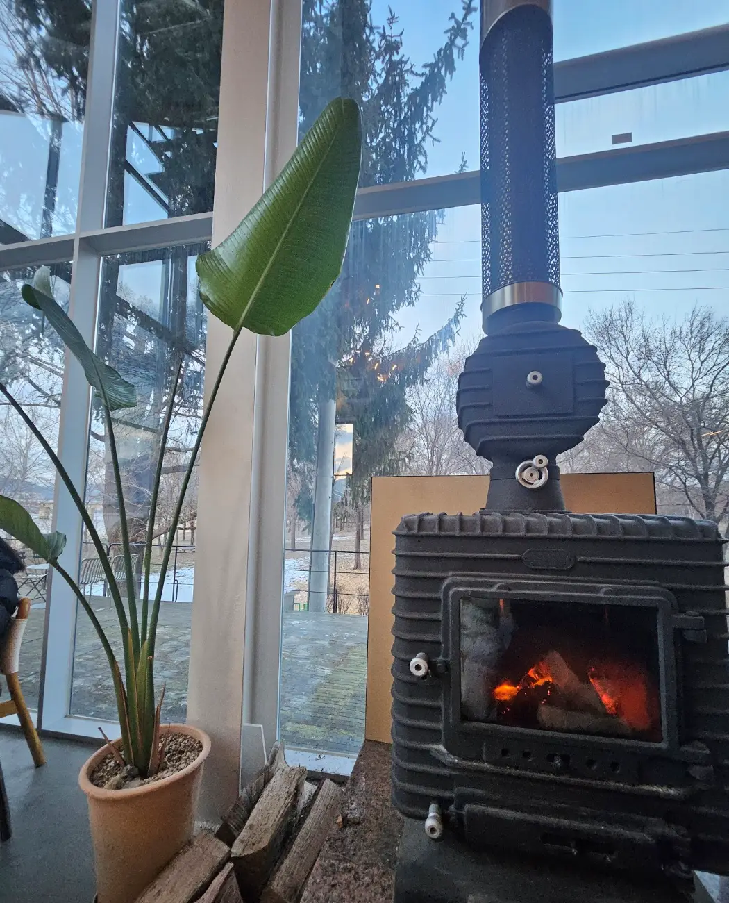 벽난로 - 가짜일까 싶었지만 배기구가 높은천장까지 따라올라가있고 불씨가 꺼져갈때 직원이 다가와 다시 살리는 것을 보고 진짜구나 싶었다. 가까이 다가가니 따뜻한 열기가 느껴졌고 한동안 불멍하기 좋았다.